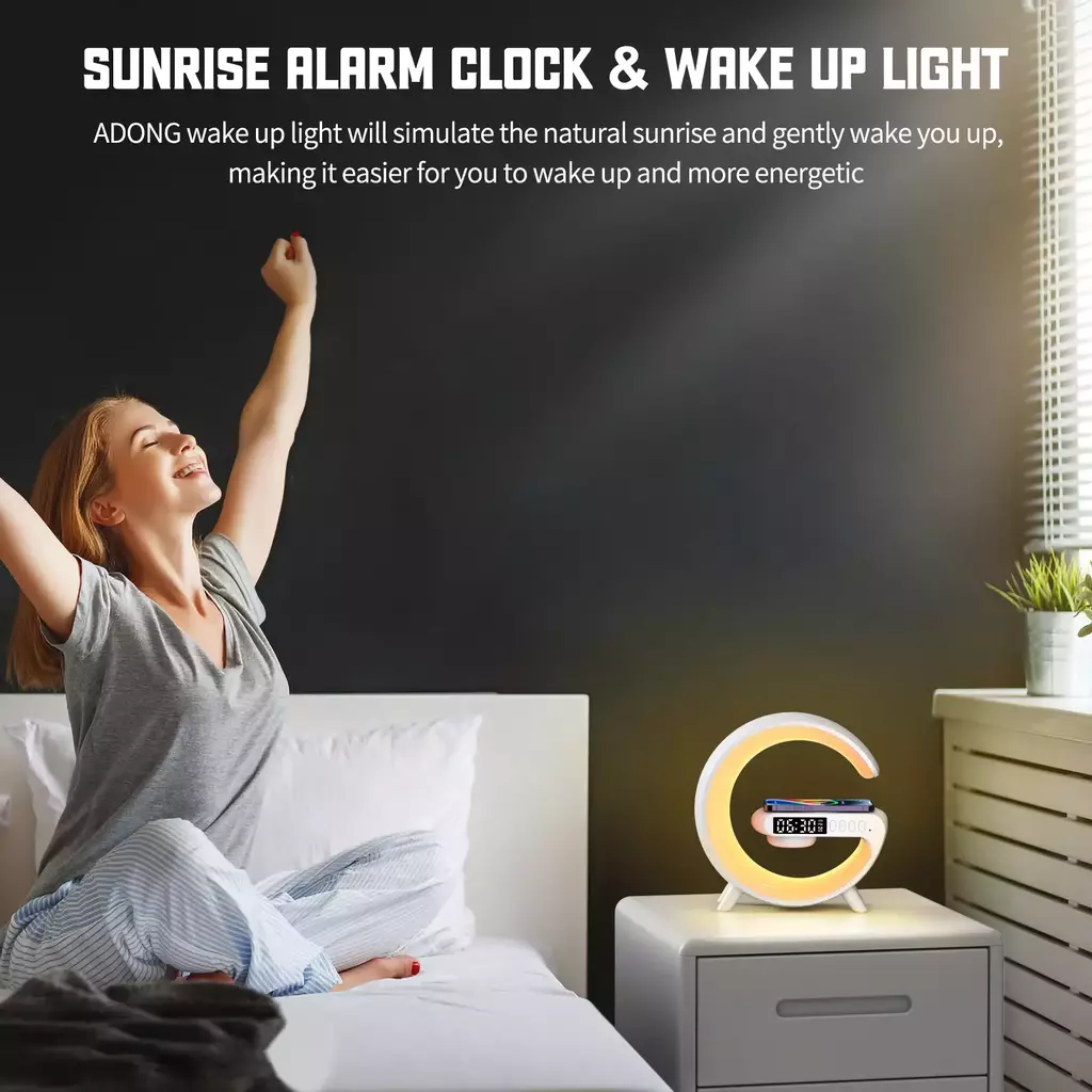 Function description: 15W Fast wireless charging,atmosphere lamp, bedside lamp, dazzling light effect, Bluetooth audio, speaker play and Aux, TF ,Time, Alarm Clock mode.
